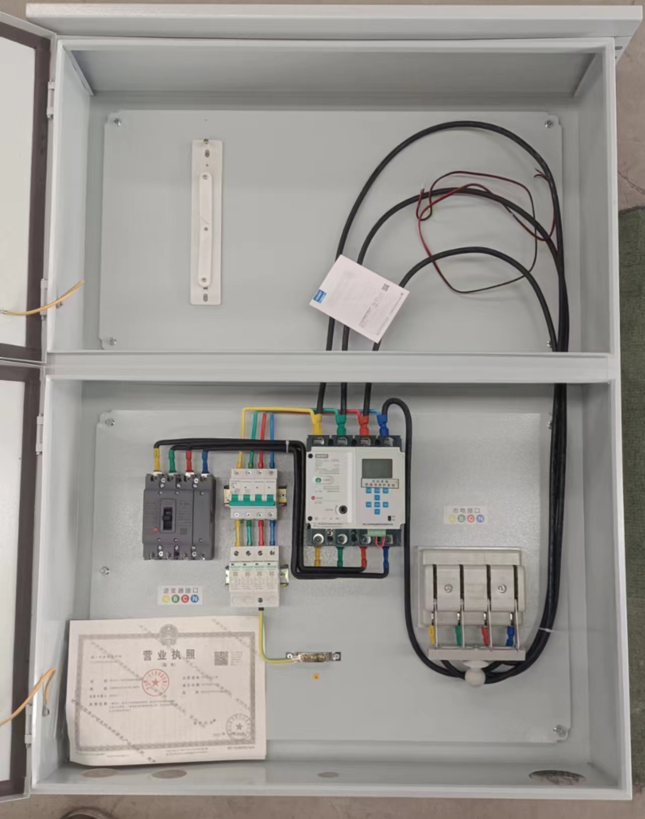 1、结构合理:接线空间宽敞,容积大,多层防护隔板主开关采用多功能装饰板,可随意更换开关,ABS塑料内门锁,可防触电。